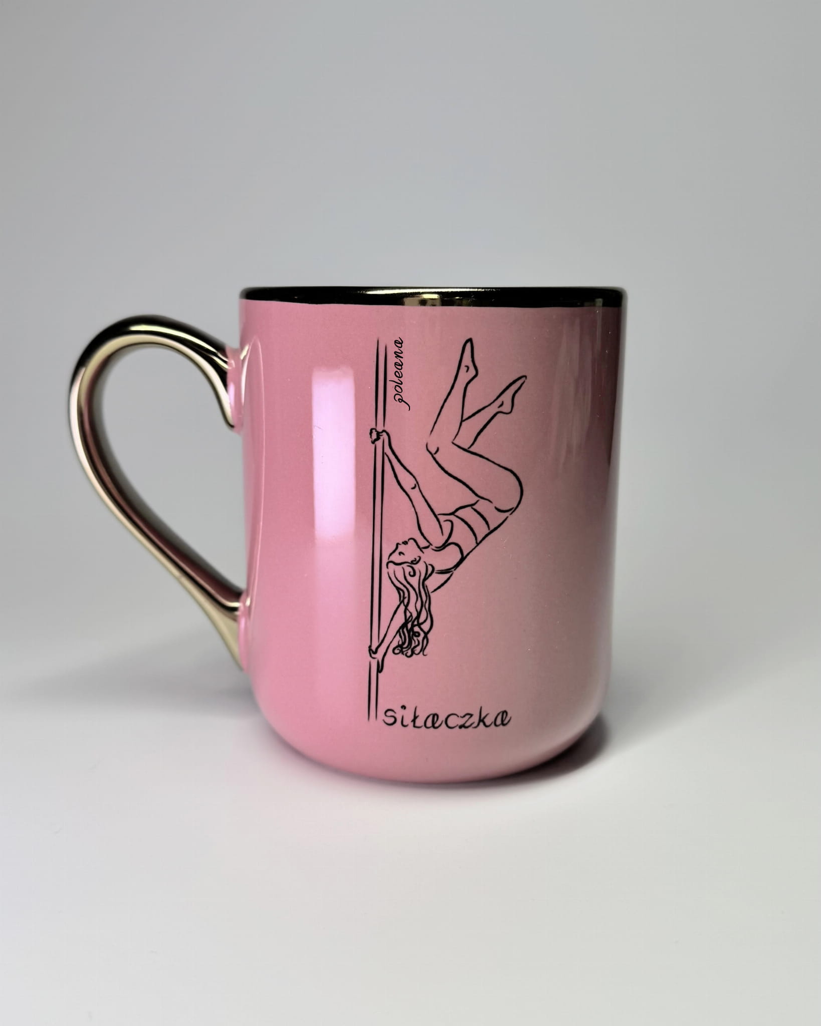 Elegancki kubek marki Poleana, ozdobiony autorską ilustracją stworzoną specjalnie dla miłośniczek pole dance.