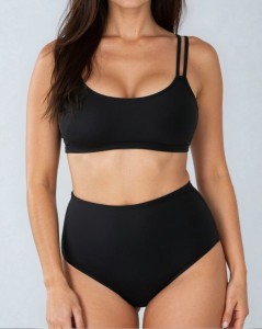 Minimalistyczny krój i podwójne ramiączka zapewniają swobodę ruchów i perfekcyjne dopasowanie. Materiał jest elastyczny, w pełni kryjący i sprawdzi się również jako bikini. Od wewnętrznej strony znajdują się kieszonki na wkładki. Krawędzie topu wykończone są miękką gumą i obszyte materiałem, które zapobiegają zsuwaniu się stanika z ciała. Dodatkowy ściągacz pod biustem gwarantuje stabilność, także podczas odwróconych pozycji.